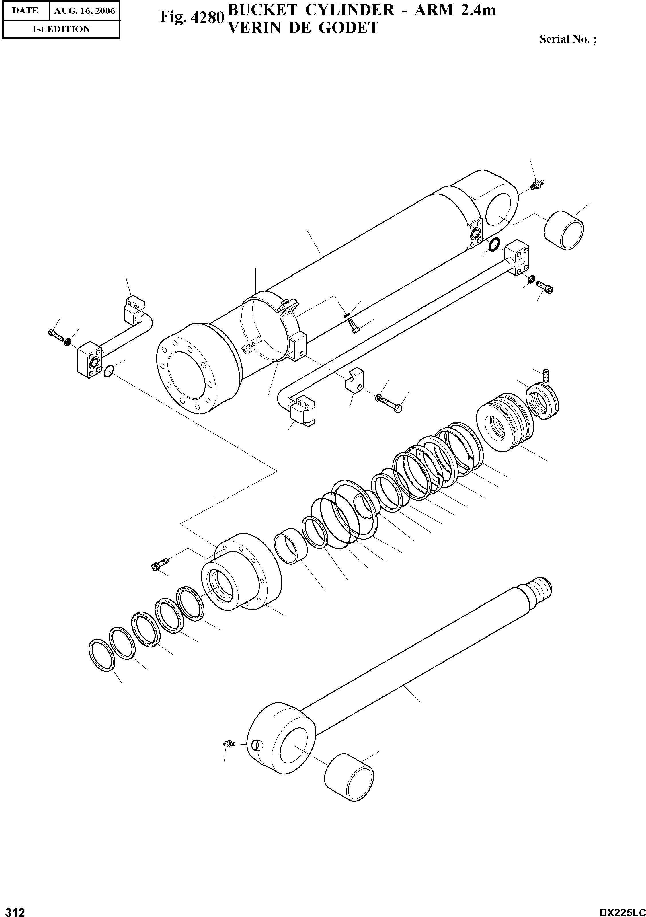 Запчасти Doosan Daewoo BUCKET CYLINDER - ARM 2.4M HYDRAULIC PARTS