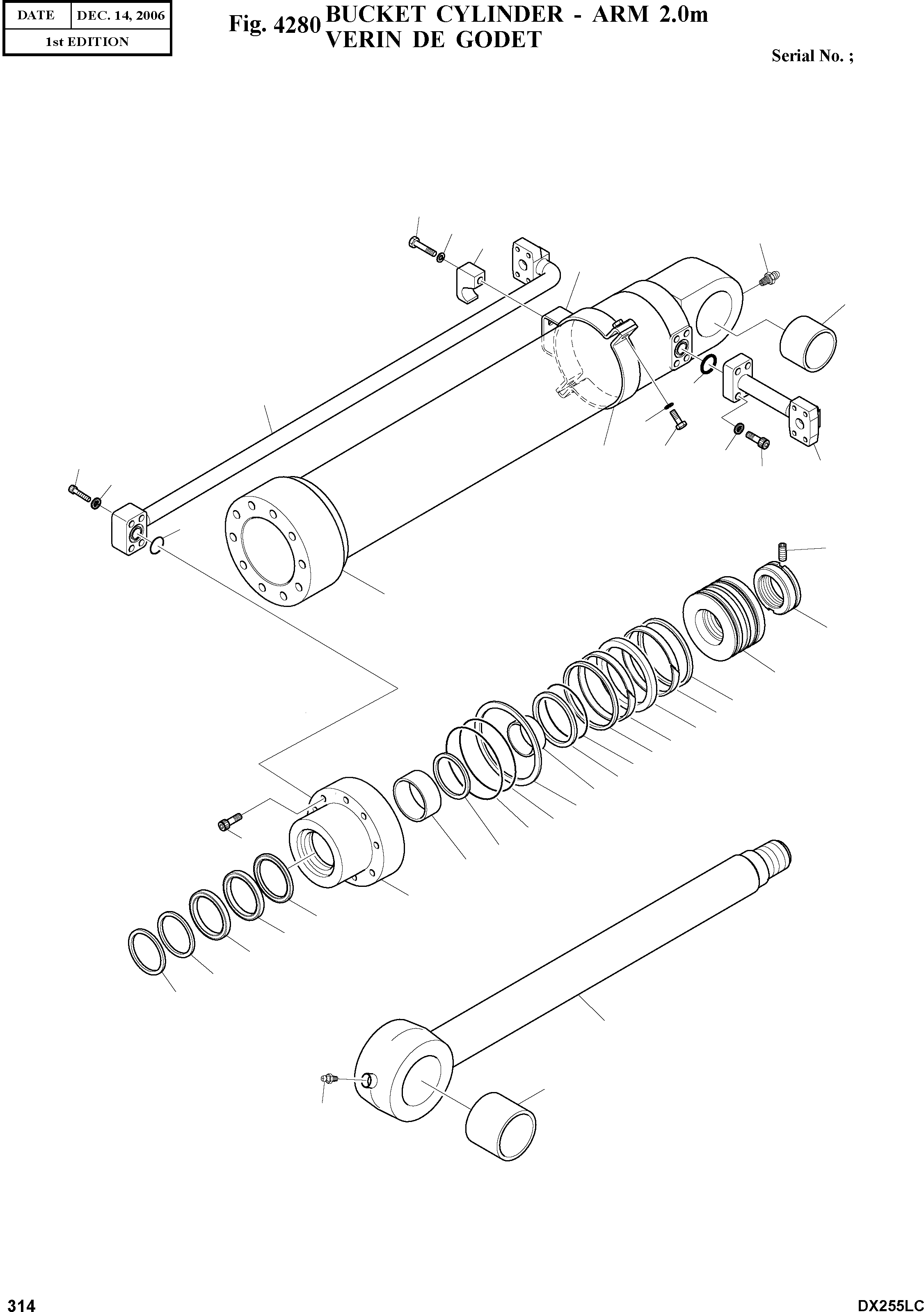 Запчасти Doosan Daewoo BUCKET CYLINDER - ARM 2.0M HYDRAULIC PARTS