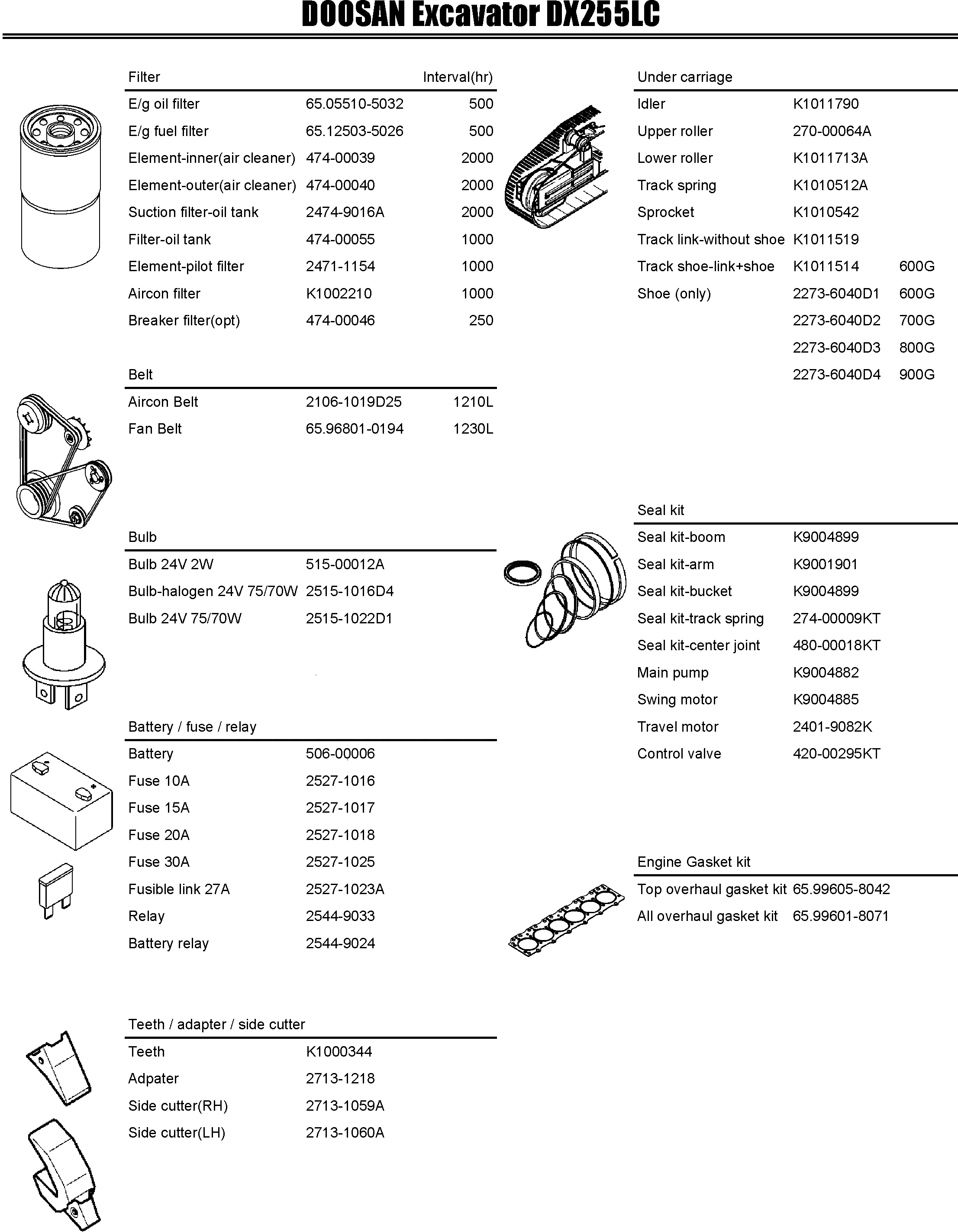 Запчасти Doosan Daewoo SPARE PARTS LIST DX255LC