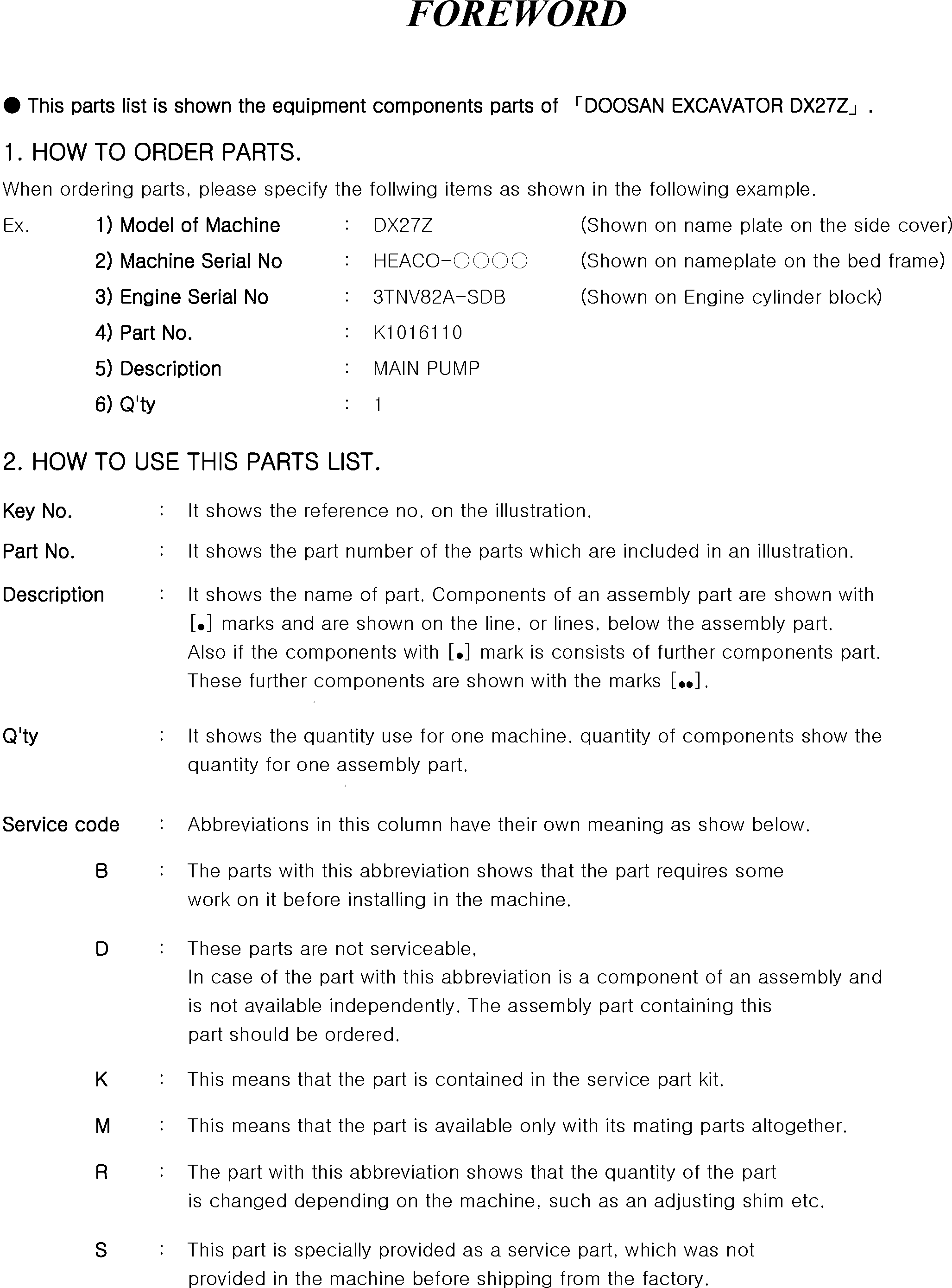 Запчасти Doosan Daewoo FOREWORD DX27Z