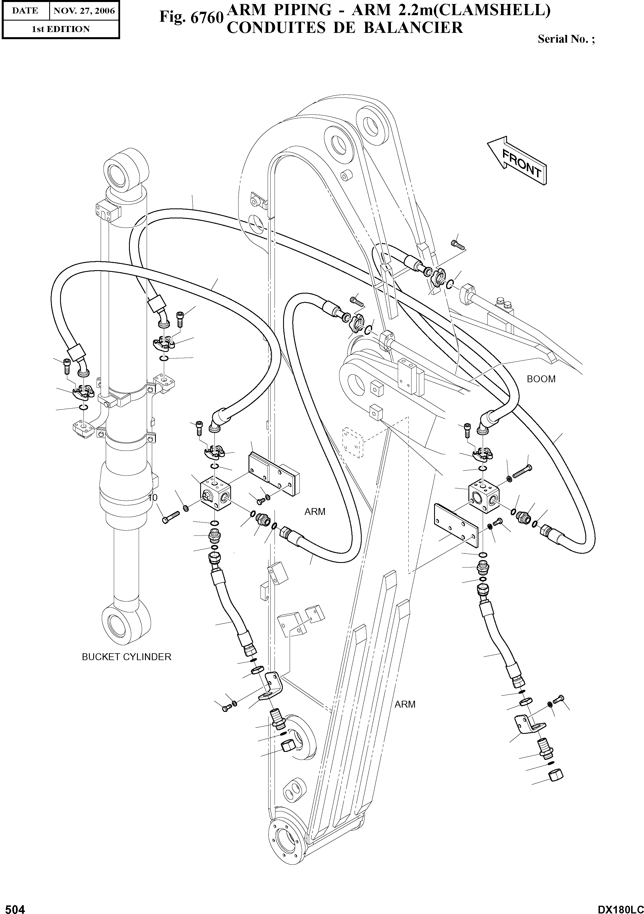 Запчасти Doosan Daewoo ARM PIPING - ARM 2.2M(CLAMSHELL) OPTIONAL PARTS