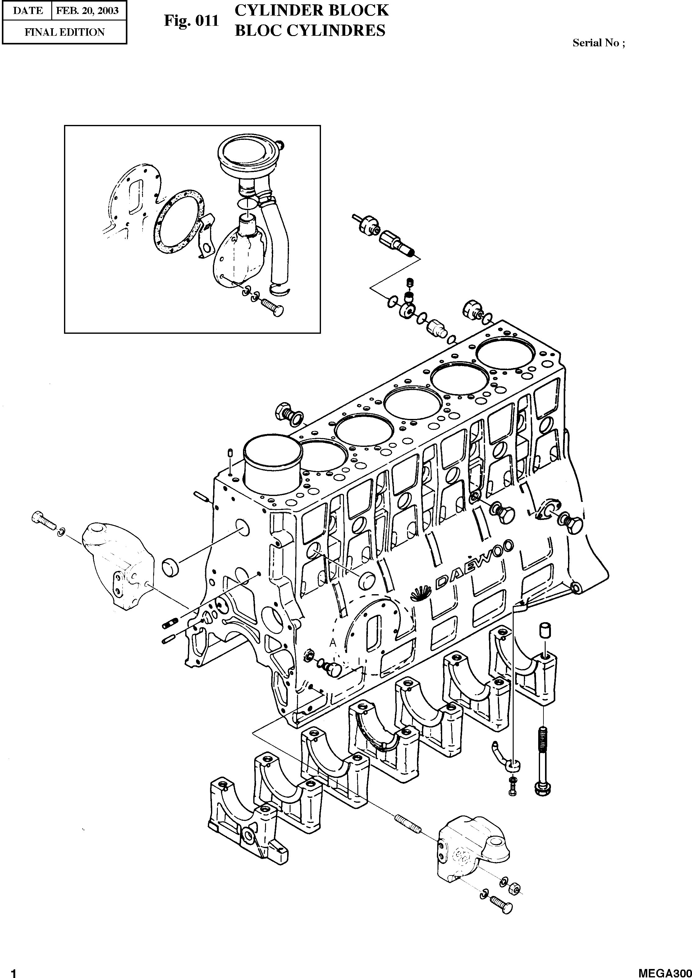 Запчасти Doosan Daewoo CYLINDER BLOCK ENGINE PARTS