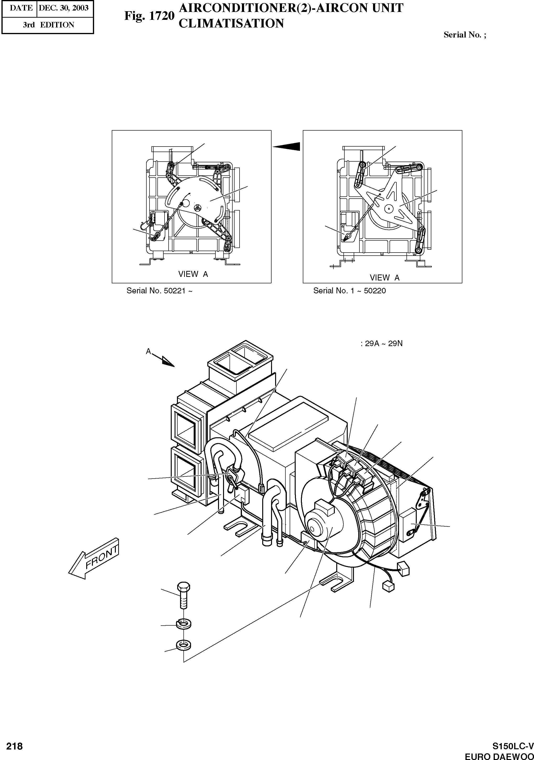 Запчасти Doosan Daewoo AIRCONDITIONER(2)-AIRCON UNIT BODY PARTS