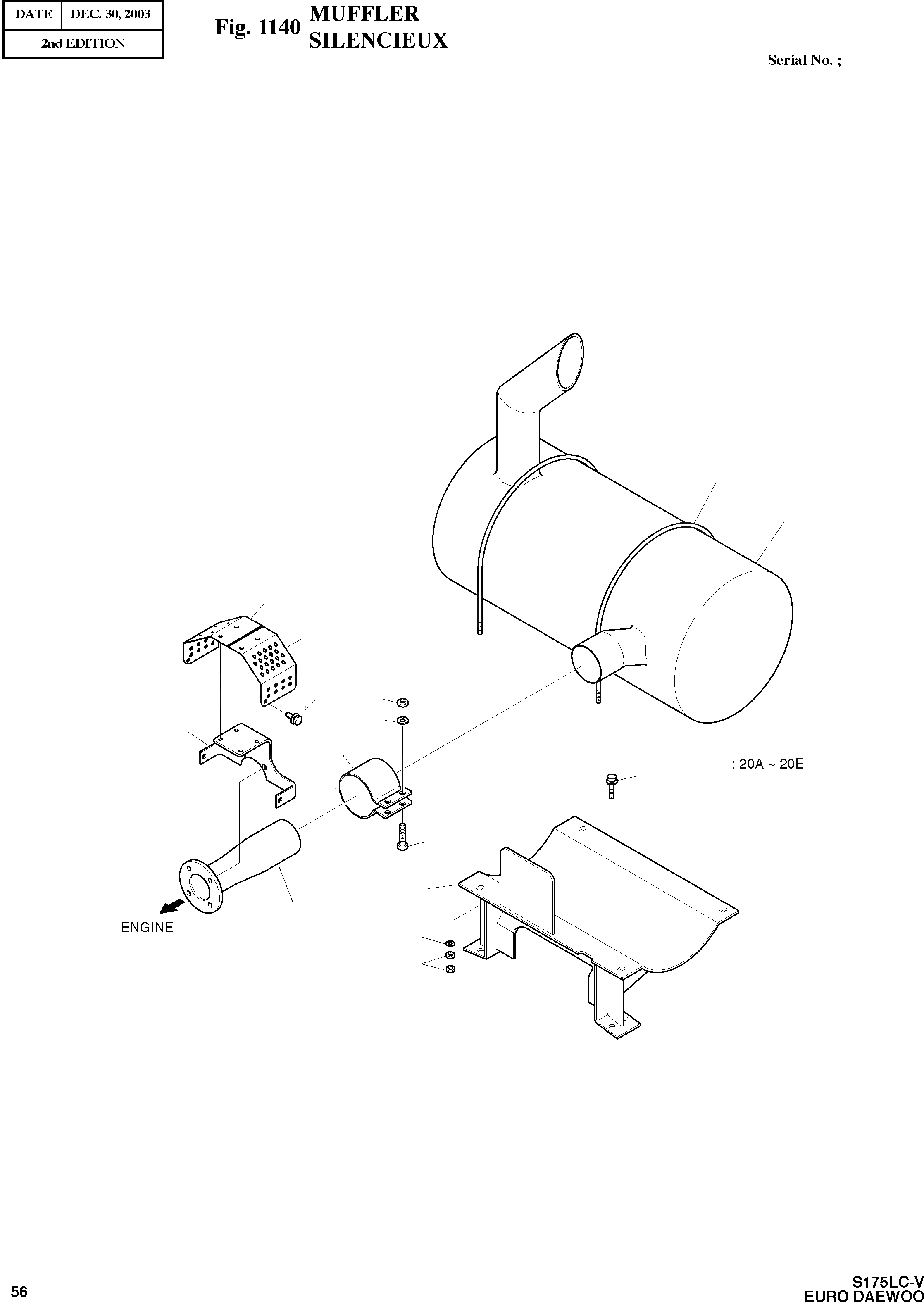 Запчасти Doosan Daewoo MUFFLER BODY PARTS