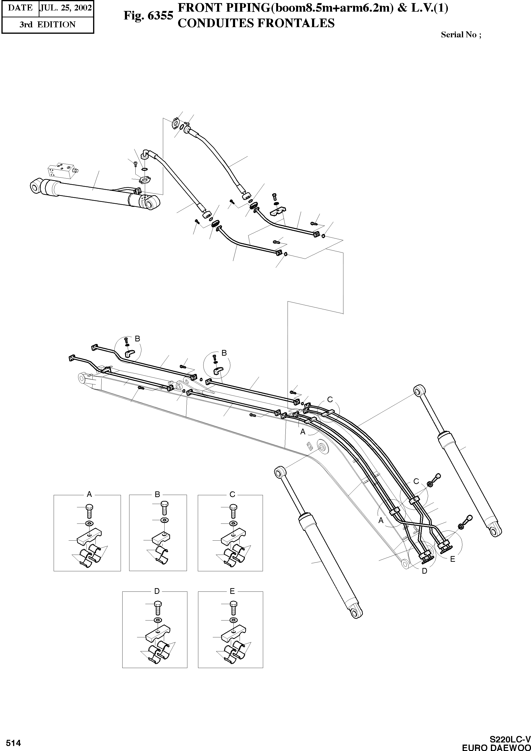 Запчасти Doosan Daewoo FRONT PIPING (BOOM8.5M+ARM6.2M) & L.V.(1) OPTION PARTS