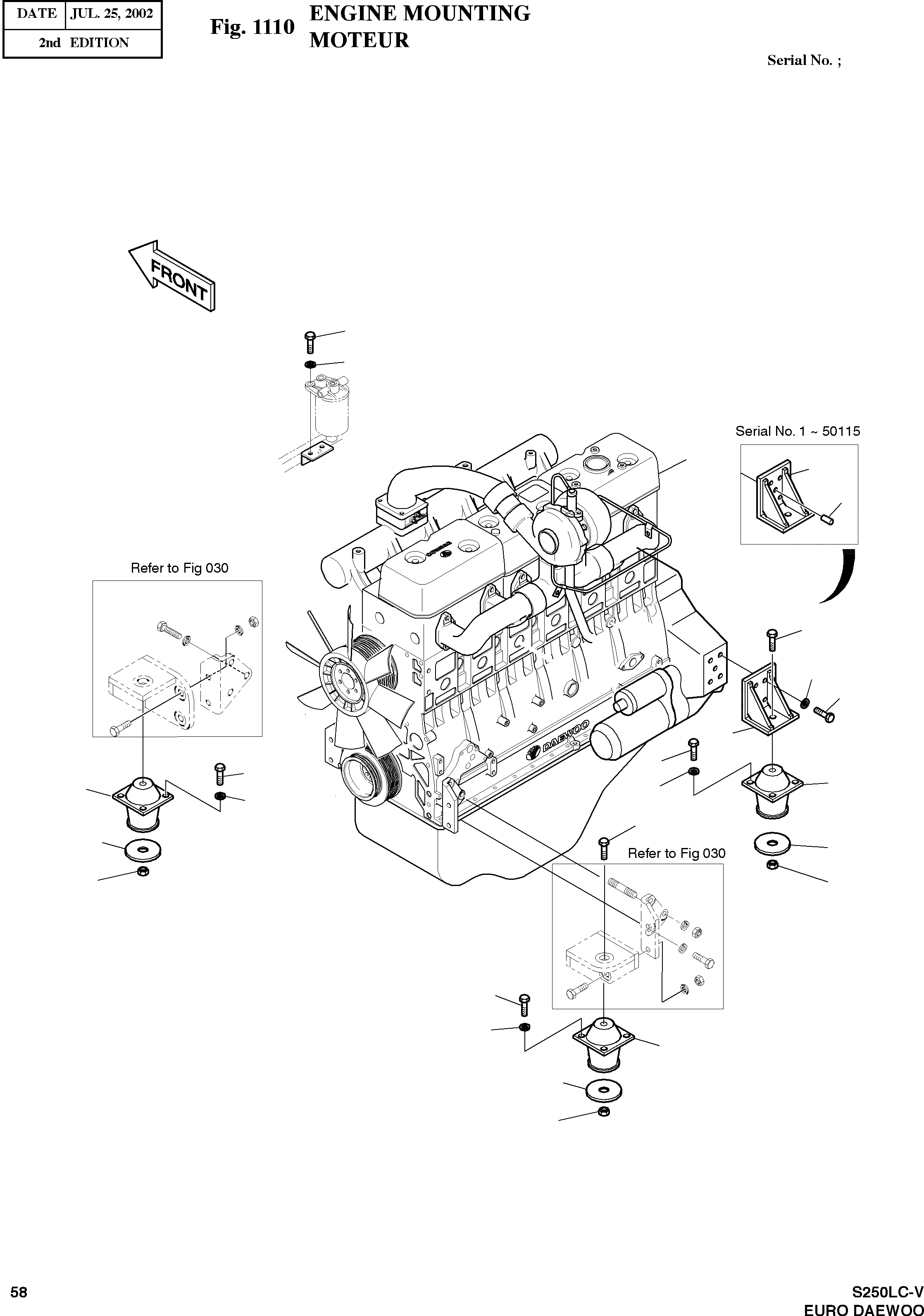 Запчасти Doosan Daewoo ENGINE MOUNTING BODY PARTS