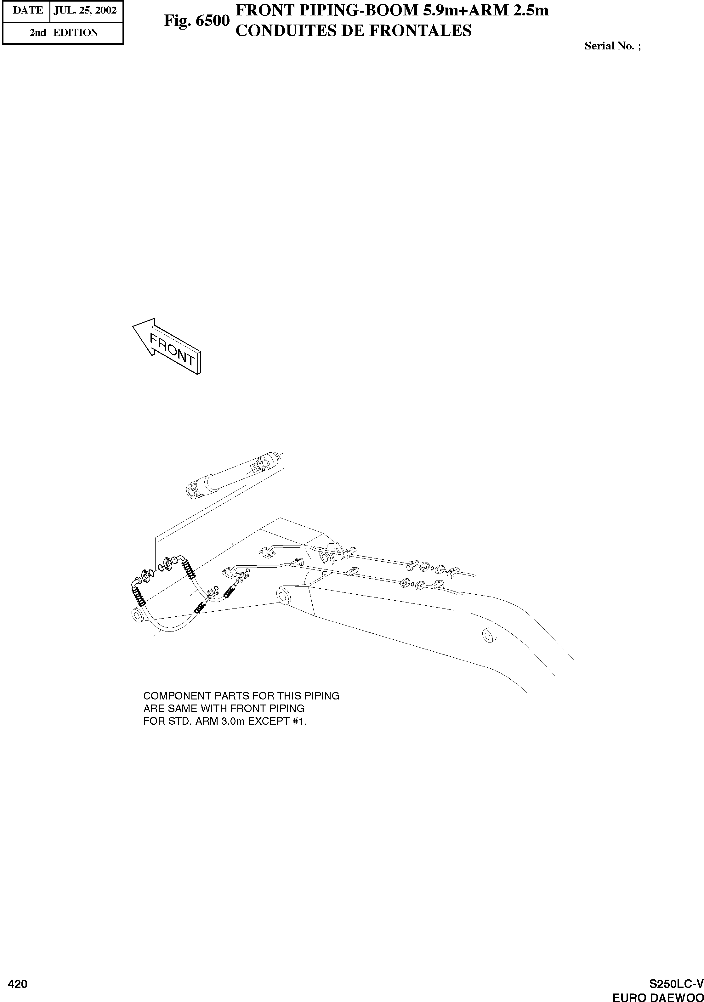 Запчасти Doosan Daewoo FRONT PIPING-BOOM 5.9M+ARM 2.5M OPTION PARTS