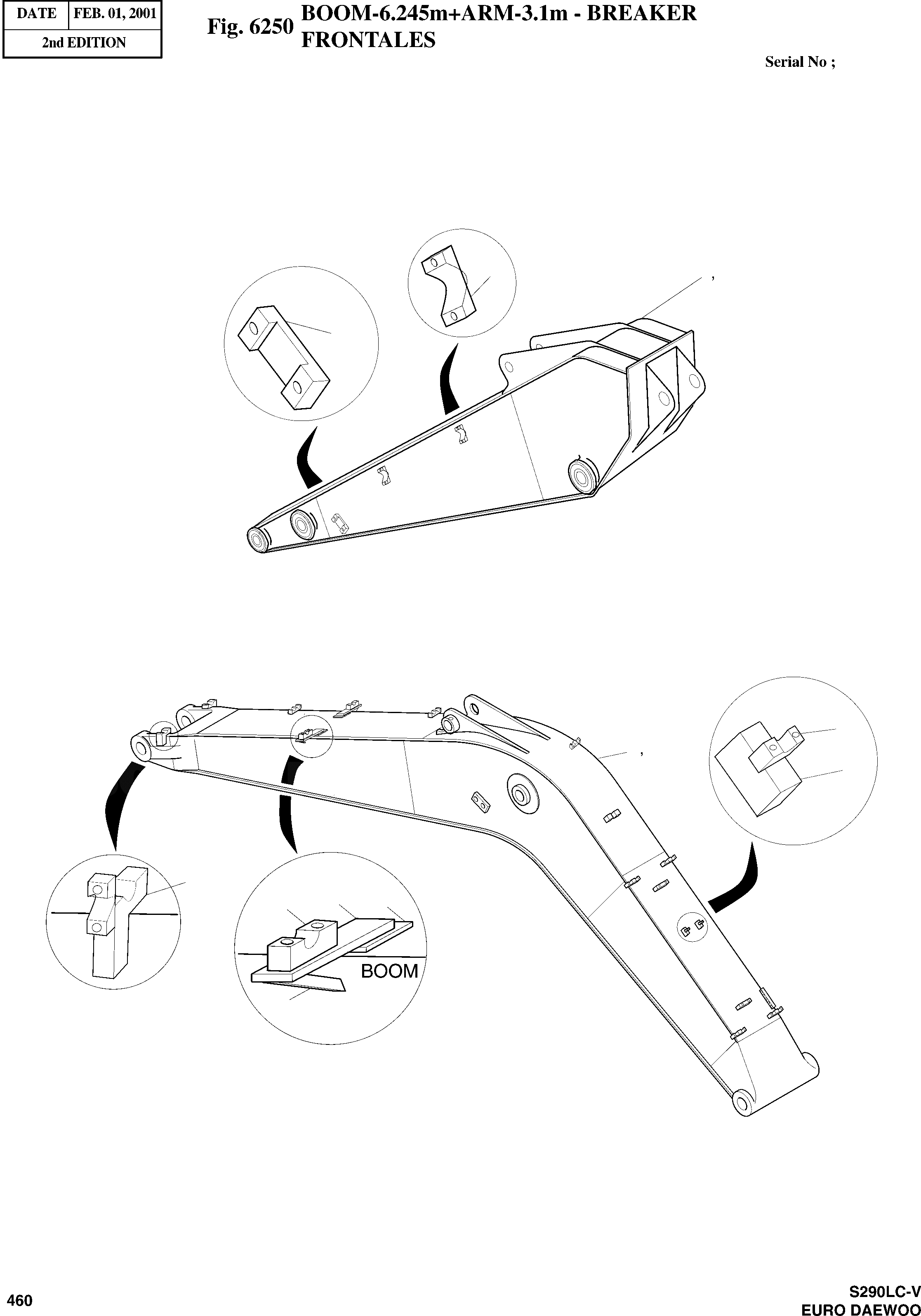 Запчасти Doosan Daewoo BOOM-6.245M+ARM-3.1M - BREAKER OPTION PARTS