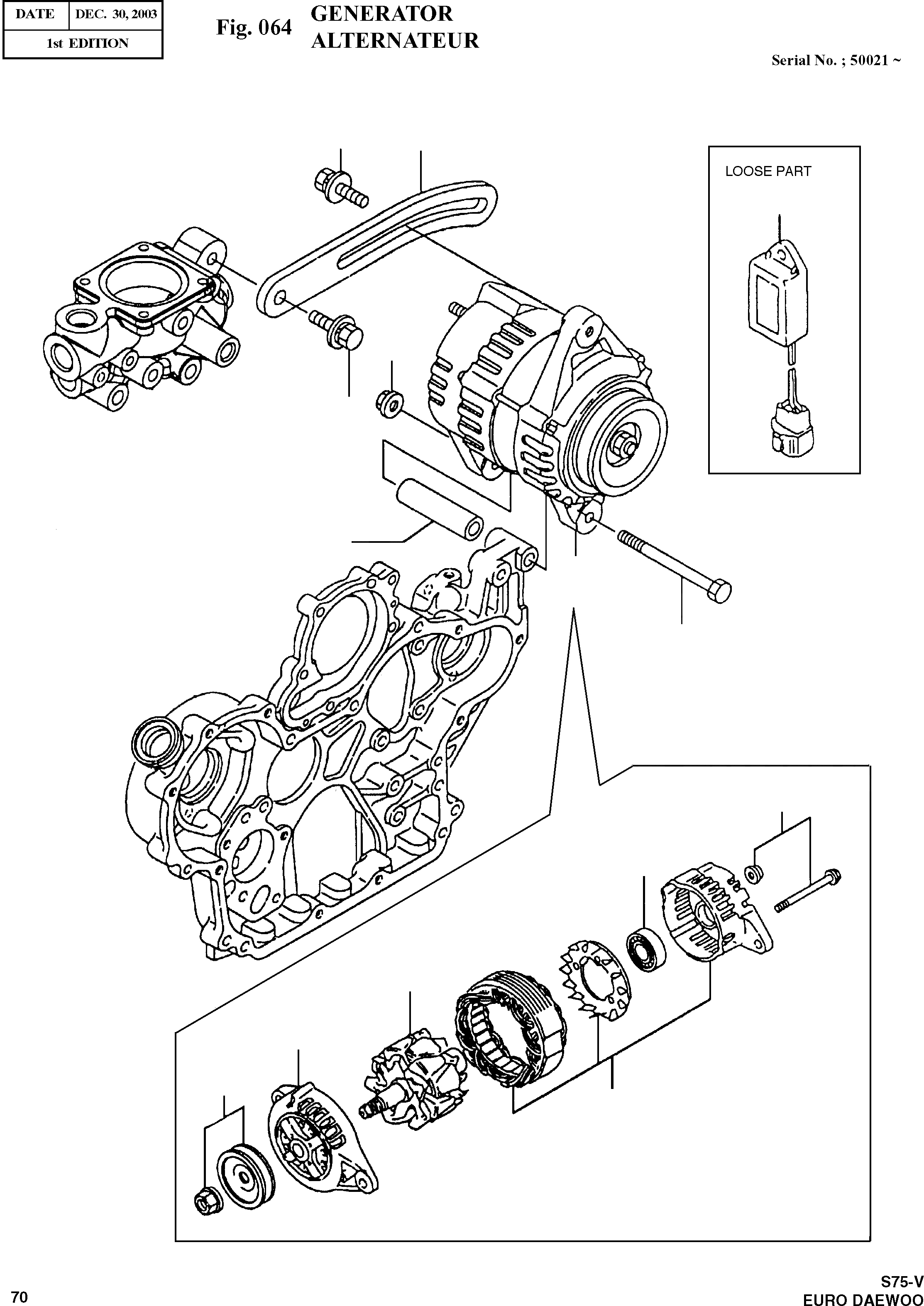 Запчасти Doosan Daewoo GENERATOR ENGINE PARTS