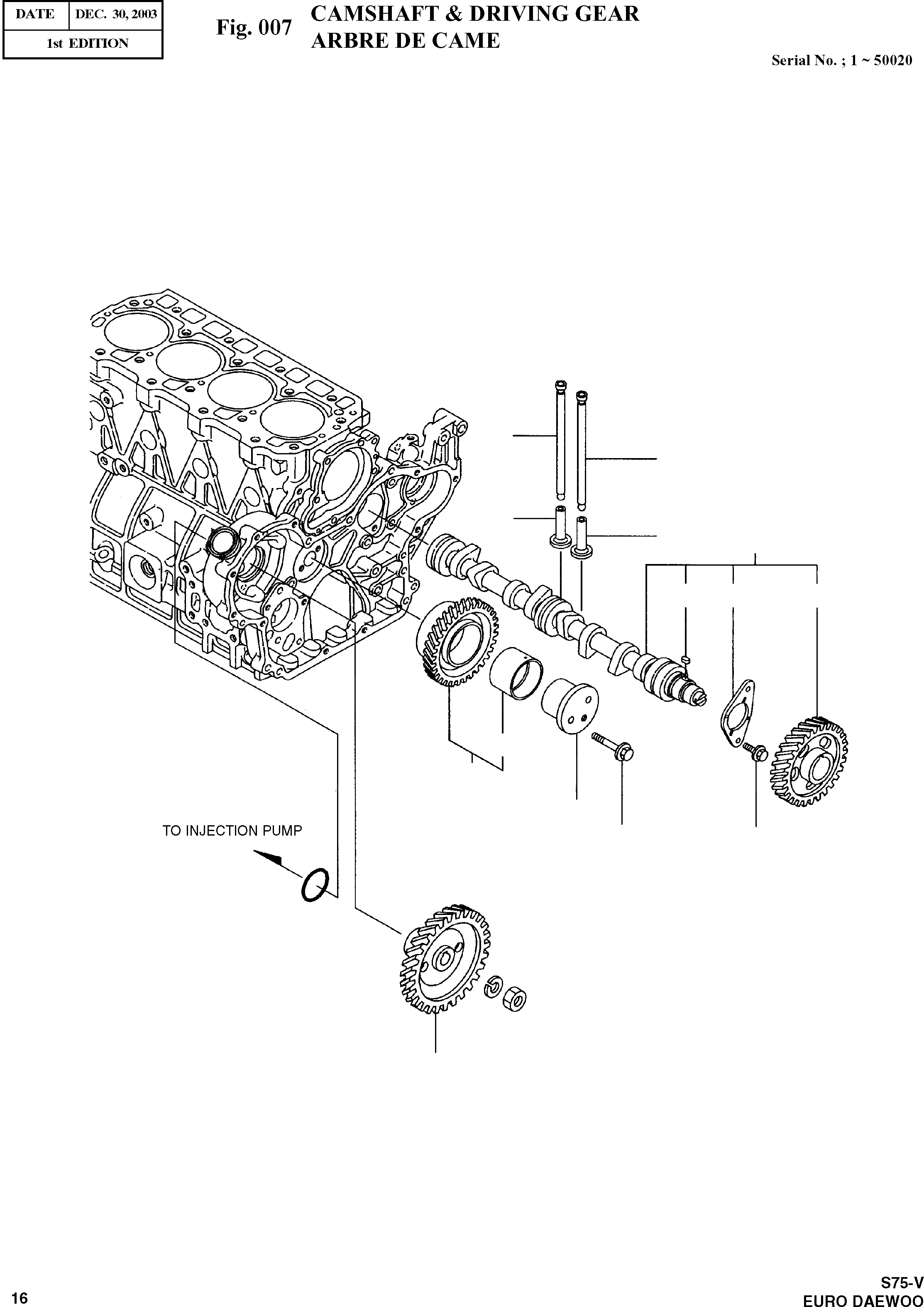 Запчасти Doosan Daewoo CAMSHAFT & DRIVING GEAR ENGINE PARTS