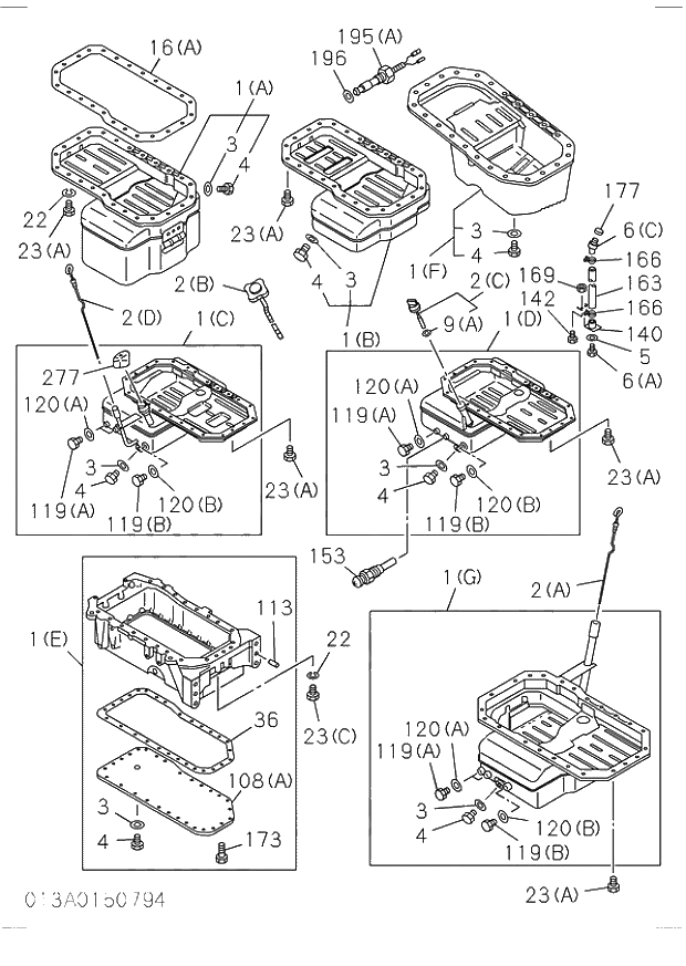 Запчасти Isuzu 013 OIL PAN AND LEVEL GAUGE. 013 OIL PAN AND LEVEL GAUGE.