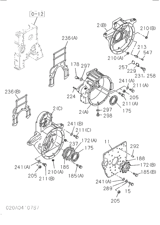 Запчасти Isuzu 020 TIMING GEAR CASE AND FLYWHEEL HOUSING. 020 TIMING GEAR CASE AND FLYWHEEL HOUSING.