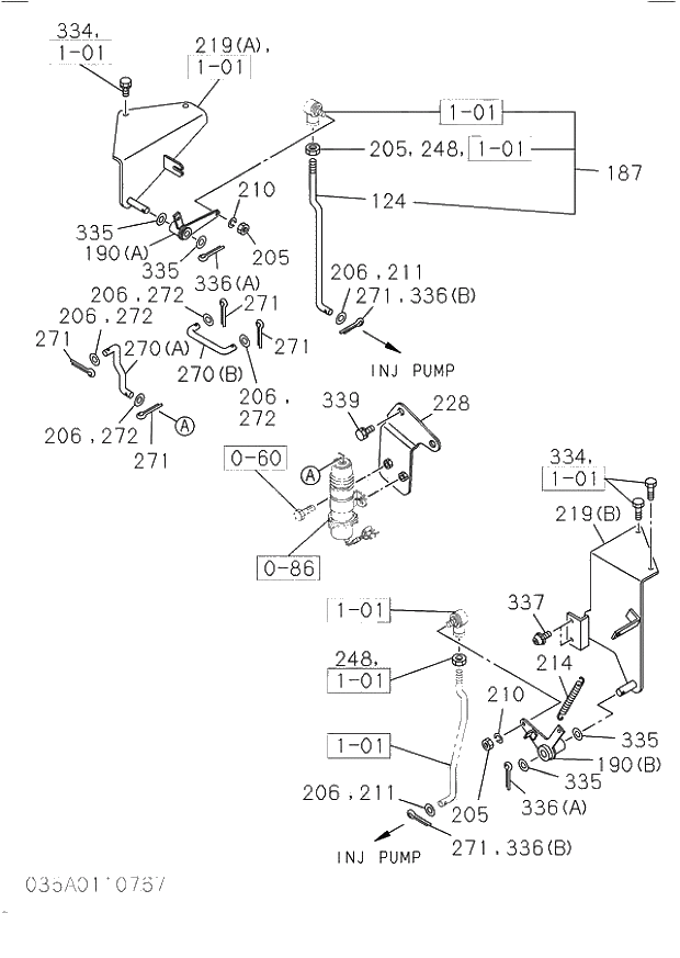 Запчасти Isuzu 035 ENGINE CONTROL VALVE AND LEVER. 035 ENGINE CONTROL VALVE AND LEVER.