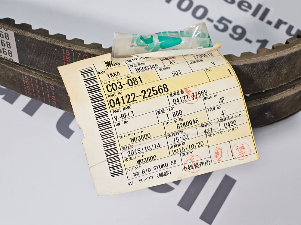 04122-22568 Ремень приводной зубчатый, KOMATSU DIESEL GENERATORS DCA EGS650 ENGINES S6D170 SA6D170 EXCAVATORS PC1250 PC1250SE PC1250SP WHEEL LOADERS WA600, CX-1700