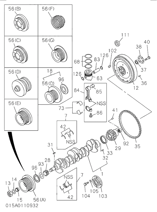 1123104701 Коленвал 6BG1, ZX200-3G