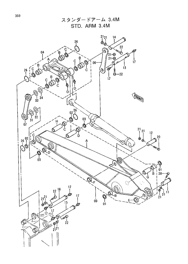 - s345541 Гидроцилиндр ковша ZX450-3 без трубок Shimitsu, ZX450-3 Bucket, S345541