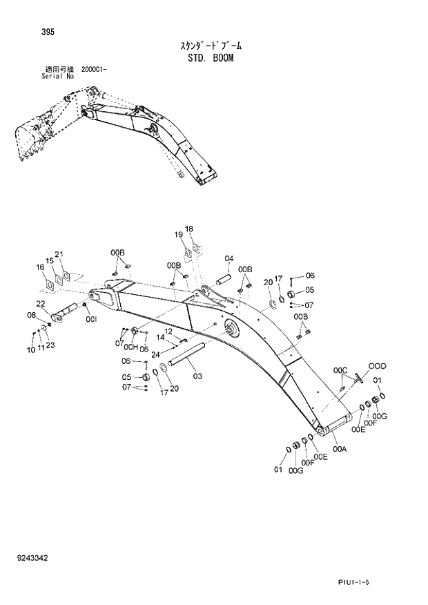 Палец стрела - гидроцилиндр стрелы ZX200-3