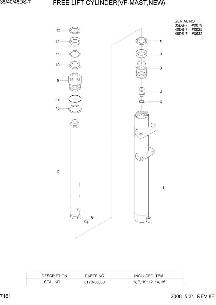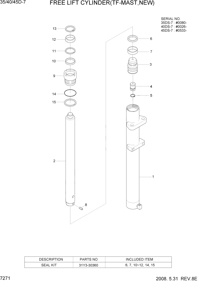 31Y3-30360 Рем/комплект гидроцилиндра свободного подъема, Hyundai 35/40/45DS/50DA-7E, 35/40/45D/50DA-9, 35DS/40DS/45DS-7, 35/40/45D-9S, 35/40/45D-9A, 35D/40D/45D-7, 35/40/45D-9K, 35/40/45D-7E, 40/45/50B-9, 35B/40B/45B/50B