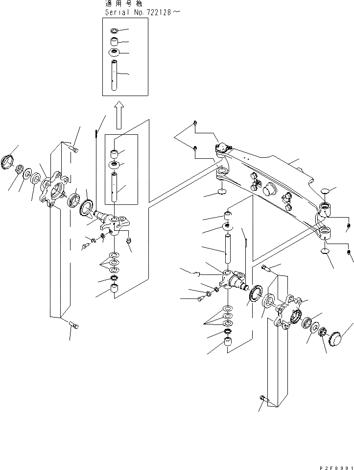 3EB-24-05140 Ремкомплект бокового шкворня со шкворнем Komatsu F15-20,-21/20-35-16,-17 (RH), 3EB2405140