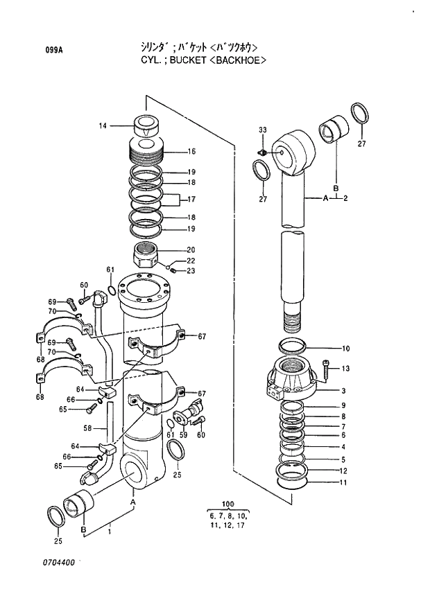 4391705 Ремкомплект гидроцилиндра Hitachi 4390024 Ковш EX400-LC/LCH/H-3 поршень 170 мм шток 120 мм
