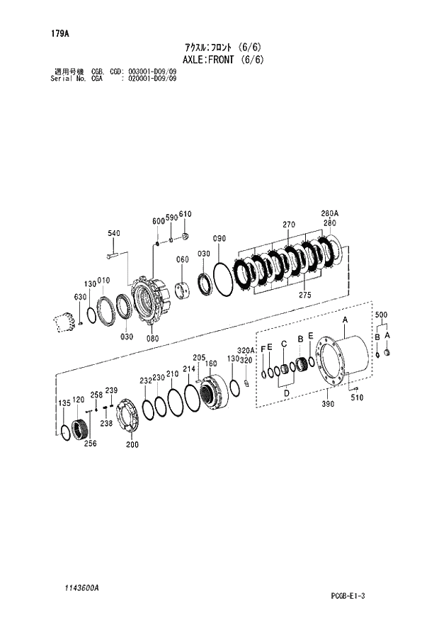- 179 AXLE FRONT (6-6) (CGA 020001 - D09-09 CGB - CGB CGD 003001 - D09-09).