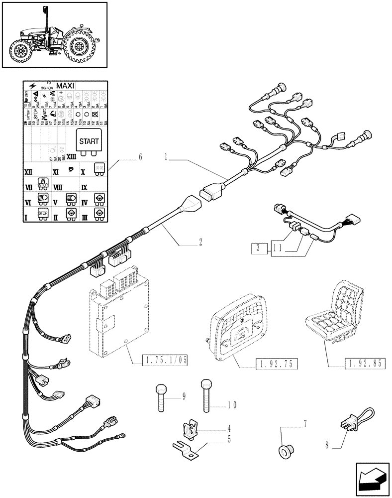 - (1.75.4/02[01]) - (VAR.748/1) 24+24 40 KM/H, HI-LO, POWER SHUTTLE - HYDRAULIC PTO - ELECTRIC CABLES