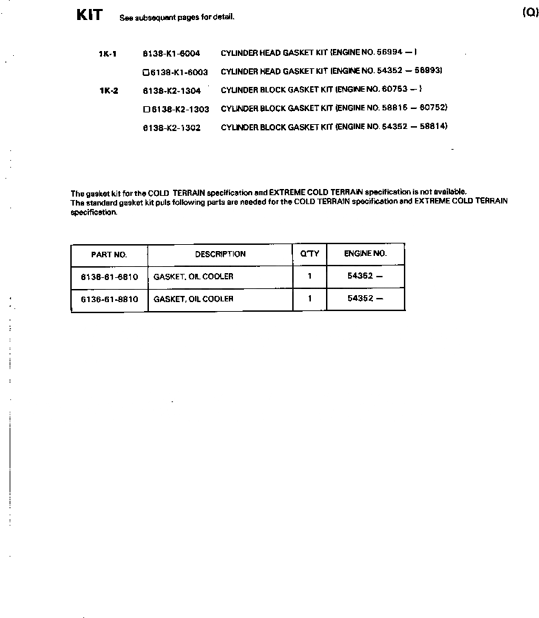О-кольцо, Komatsu QSK23, QST30, SA6D170-A-1T, SA6D170E-3A-7 & SAA6D170E-3F-8, SAA12V140E-3, SAA6D125E-5A/B/C, SAA6D170E-5, K07000-72012