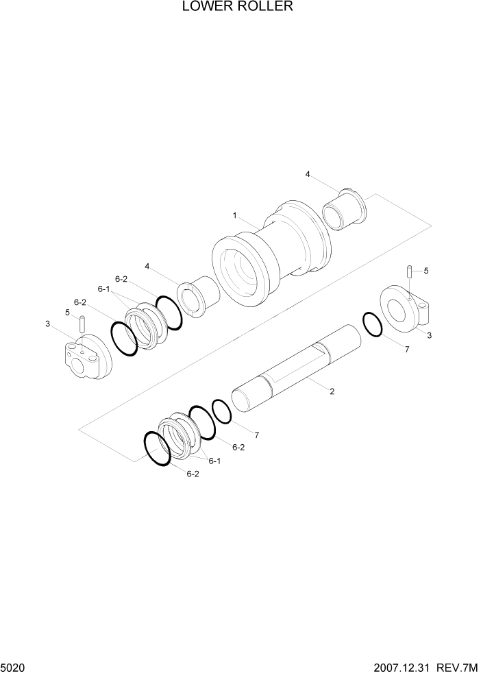 Каток опорный HyundaiR360LC-7, R450LC-7 (под болт M22, 125x400mm), 81E7-00631