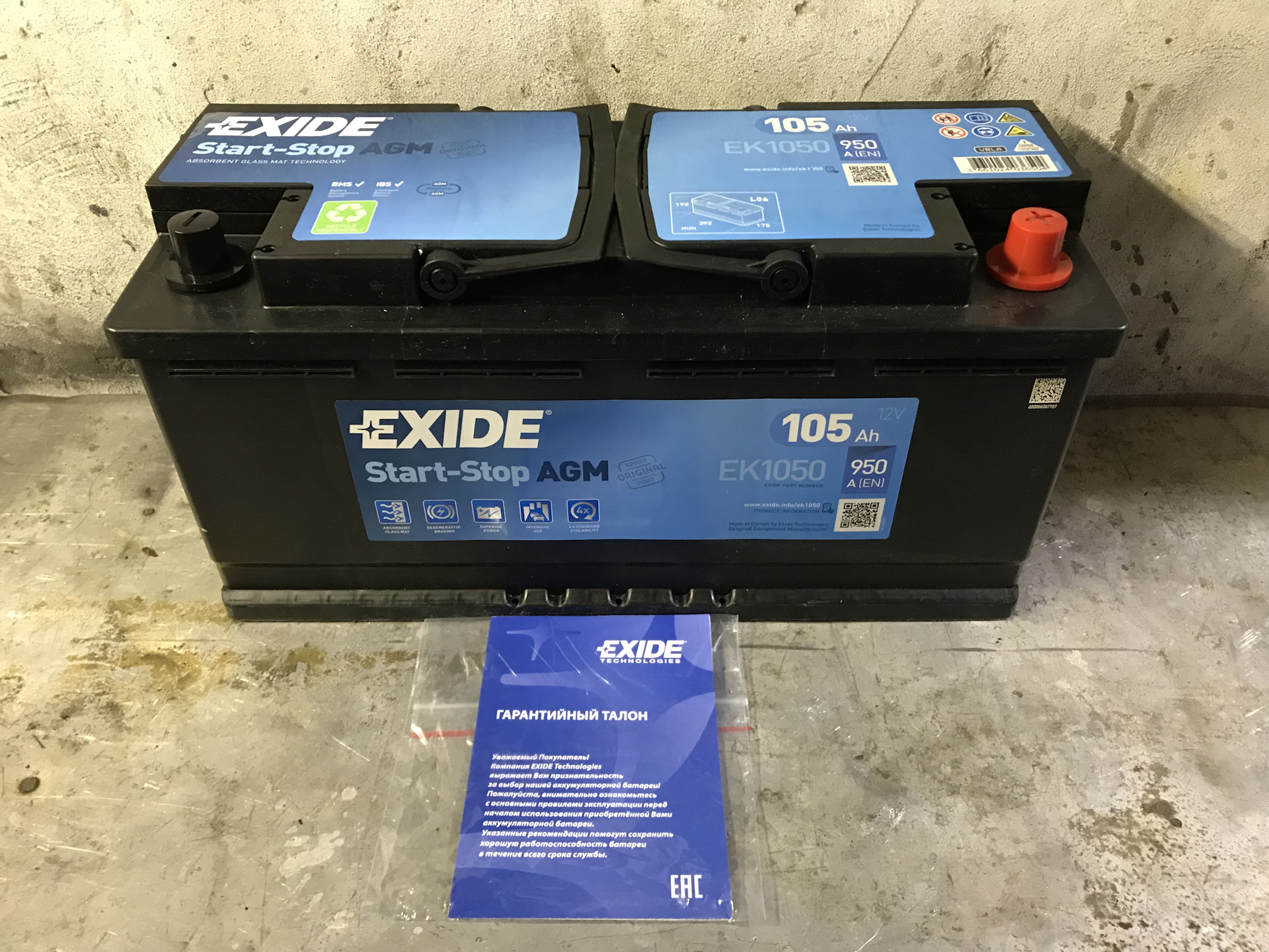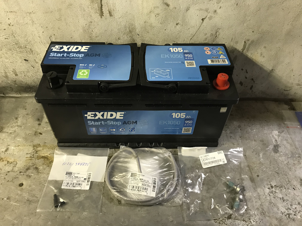 - АКБ 105Ач 950А (-/+) EK1050 Exide Start-Stop AGM (392х175х190)