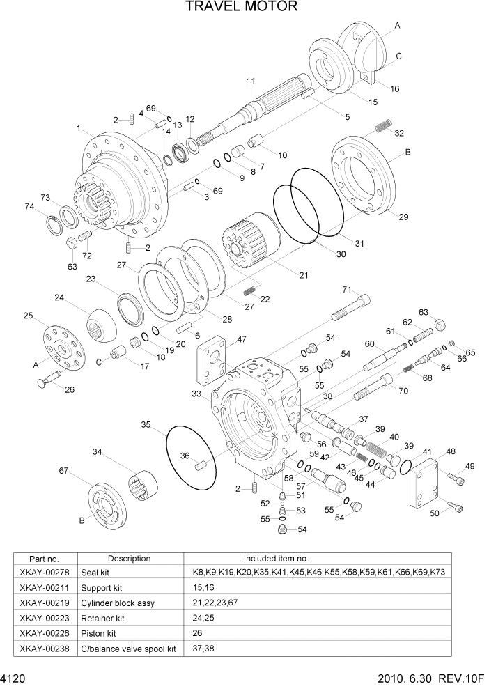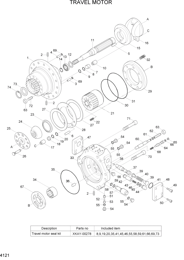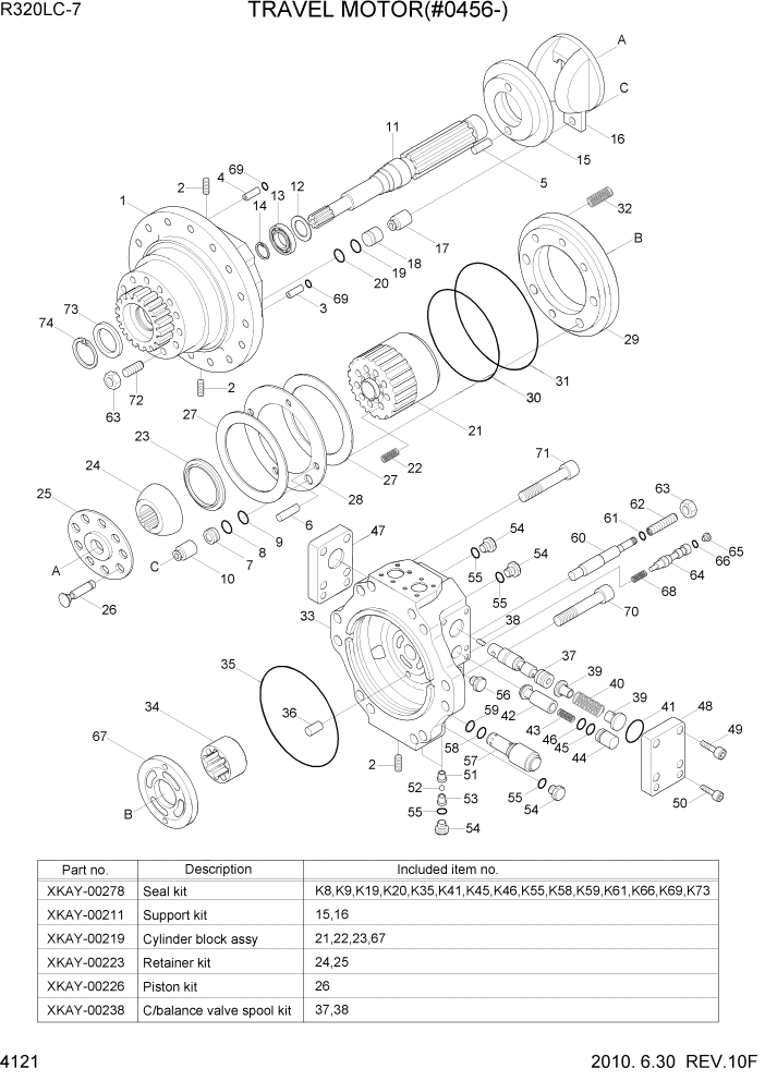 XKAY-00207 Вал Гидромотор хода R320-7 с подшипником